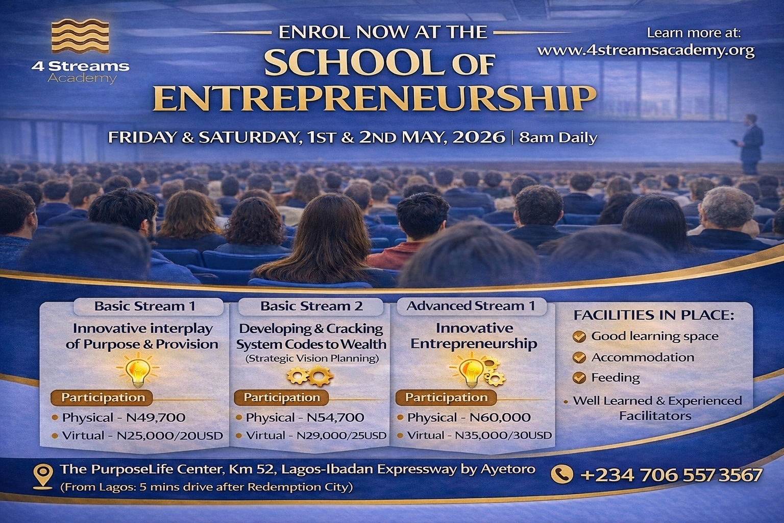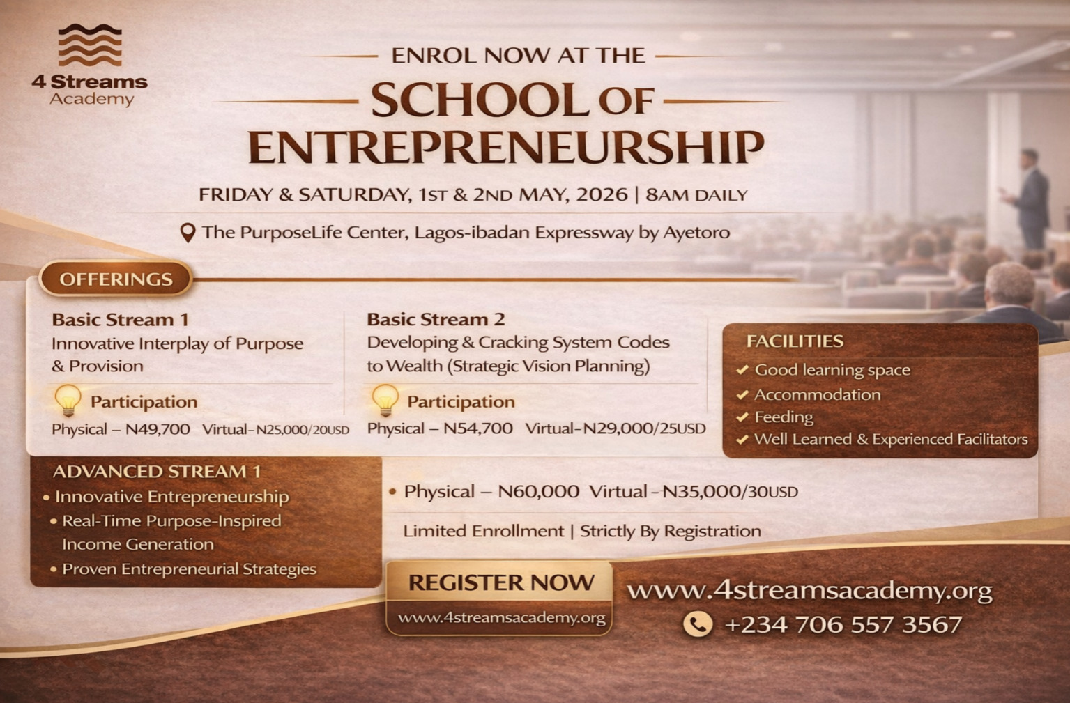 It is a more comprehensive knowledge-sharing and skill-acquisition platform than the previously held and widely successful 4 Streams of Income Seminars and Training